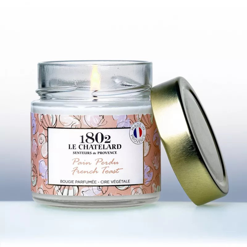 Mélange de cires 100% végétales : huile de coco et cire de soja, parfumées avec des fragrances élaborées spécialement pour Le Chatelard 1802 par les maîtres parfumeurs de Grasse.