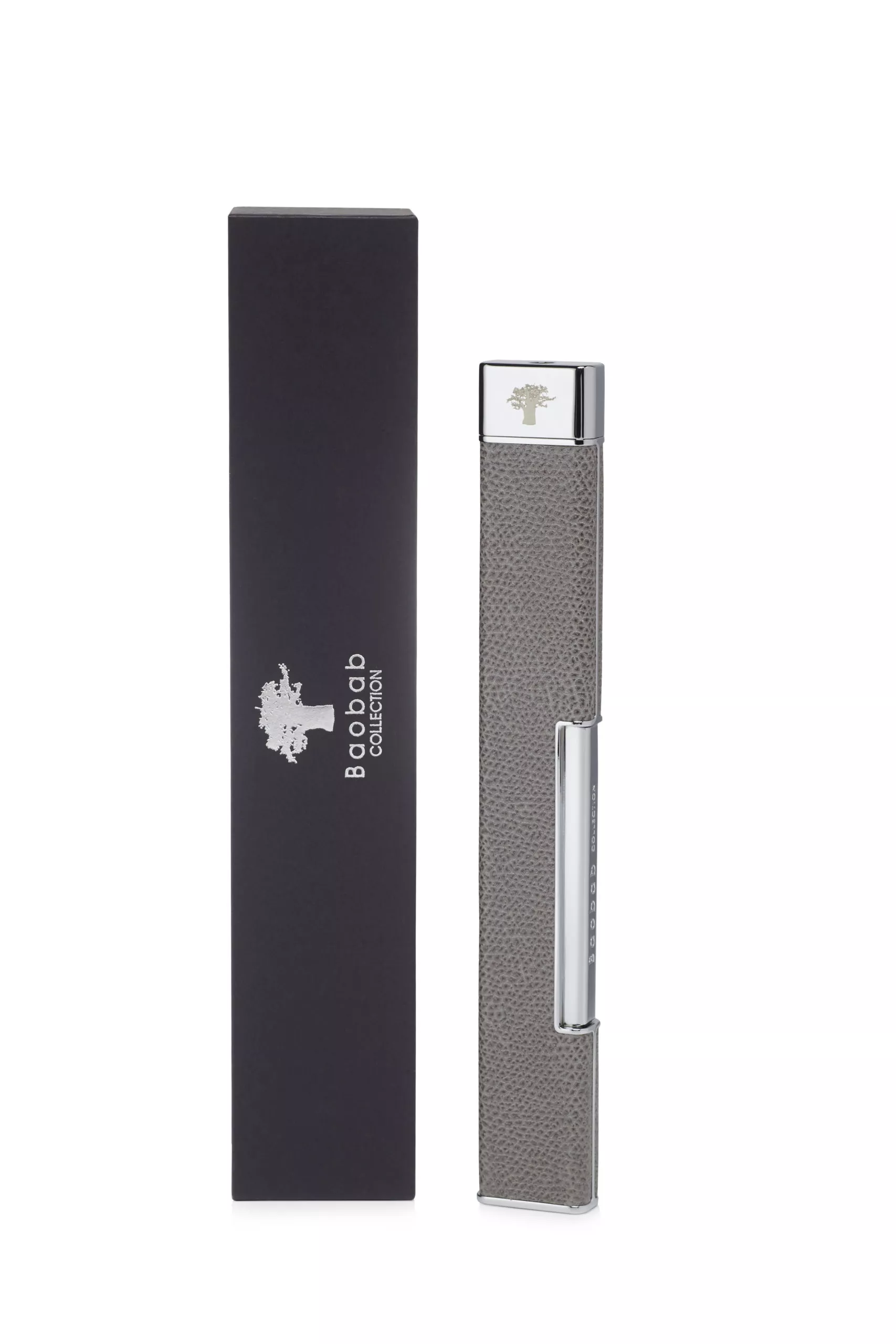Couverte de cuir à grain complet, la collection Baobab Lighter est un objet précieux destiné à l'exposition. Sa longue forme rectangulaire est à la fois contemporaine et parfaitement adaptée à tout type de bougie. Une flamme de torche a été conçue par le meilleur des ingénieurs afin d'assurer un éclairage efficace et sécurisé. * Le briquet est vendu vide avec une recharge de gaz incluse.