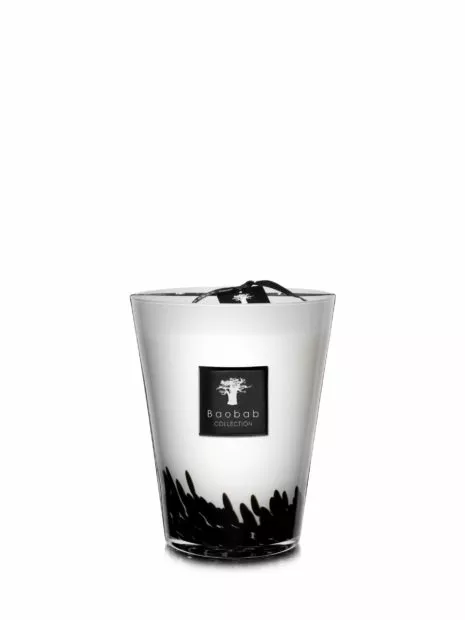 La bougie parfumée Feathers est un objet de décoration parfait pour tous les intérieurs. Les incrustations de noir dans le verre soufflé bouche donnent un effet de plumes sur le verre. Lorsque les flammes sont allumées la bougie s’illumine délicatement laissant apparaitre une lumière chaleureuse et élégante.